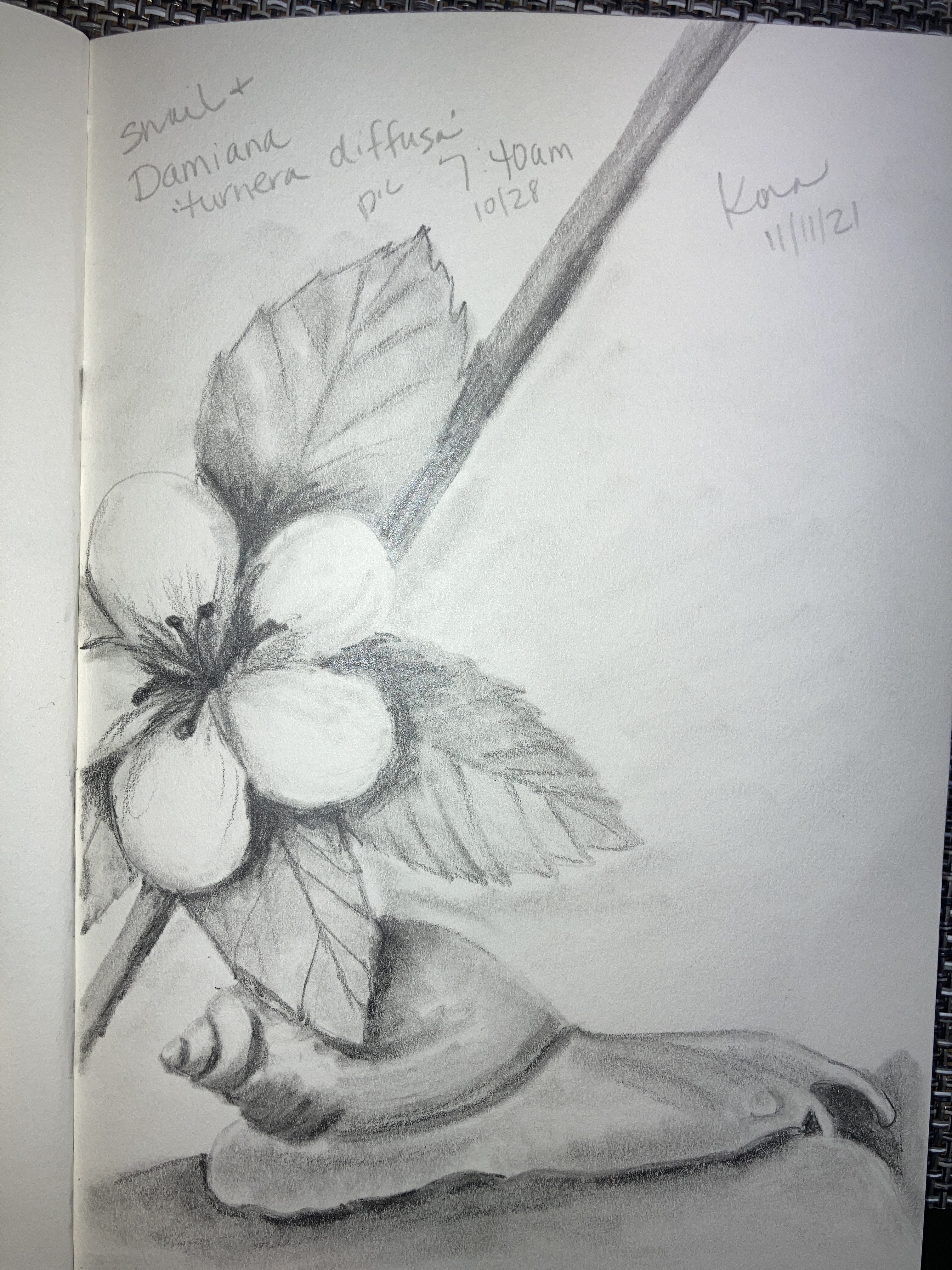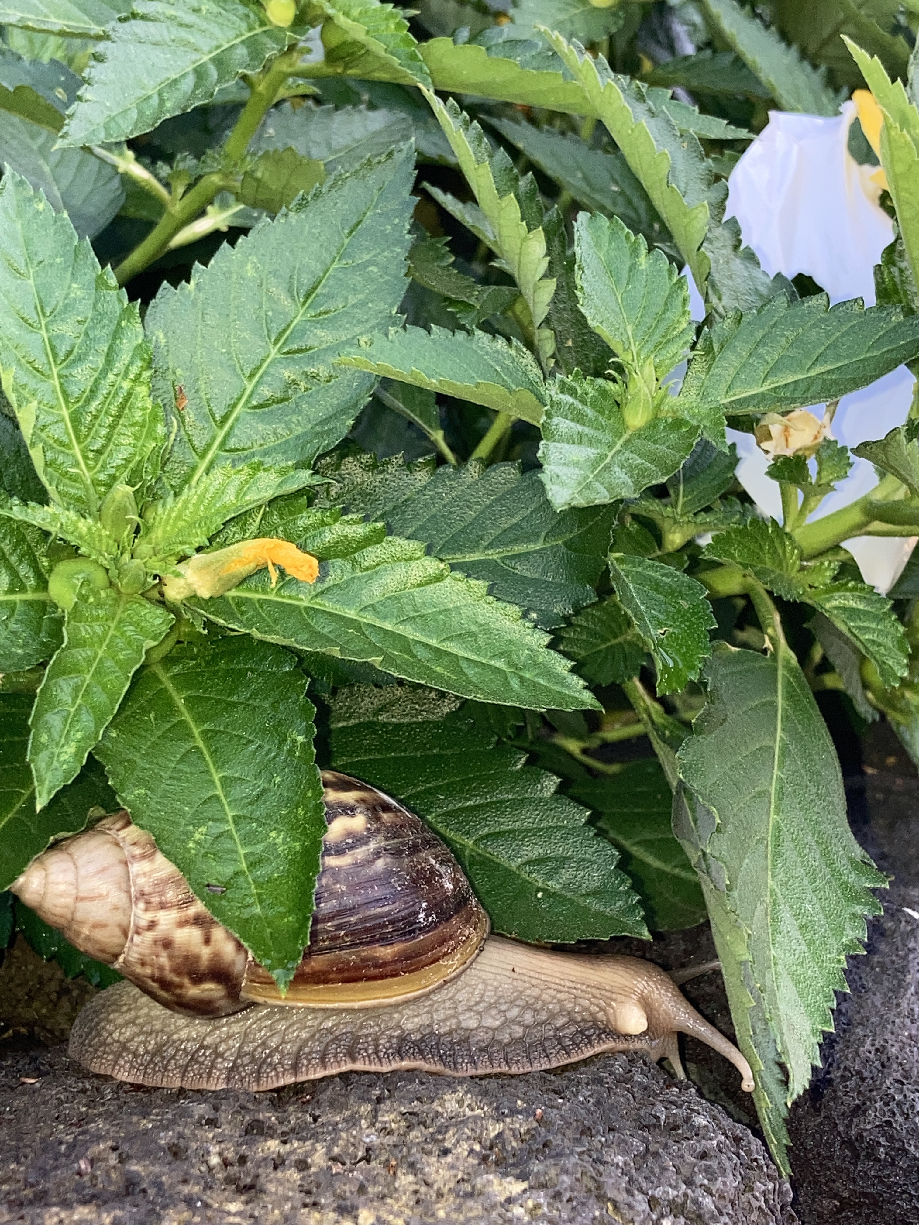 Animals, Graphite Kona Snail Posted by Inga Smith on January 2, 2022October 19, 2022 As a beekeeper, I’m always looking for flowers that attract pollinators. While admiring this little honey bee foraging this beautiful yellow damiana, I spotted a giant snail How beautiful it was under the lush green leaves. Share on X (Opens in new window) X Share on Facebook (Opens in new window) Facebook Share on LinkedIn (Opens in new window) LinkedIn Share on Pinterest (Opens in new window) Pinterest Email a link to a friend (Opens in new window) Email Like Loading...