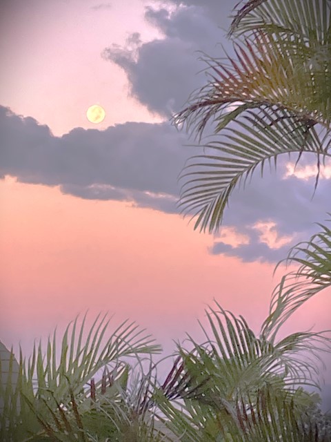 So happy to be back home, and what a beautiful way to get back into the groove…These pics were taken during my morning walk 8/31/23…Yes! it’s the moonset, not the sunset…spectacular! xo