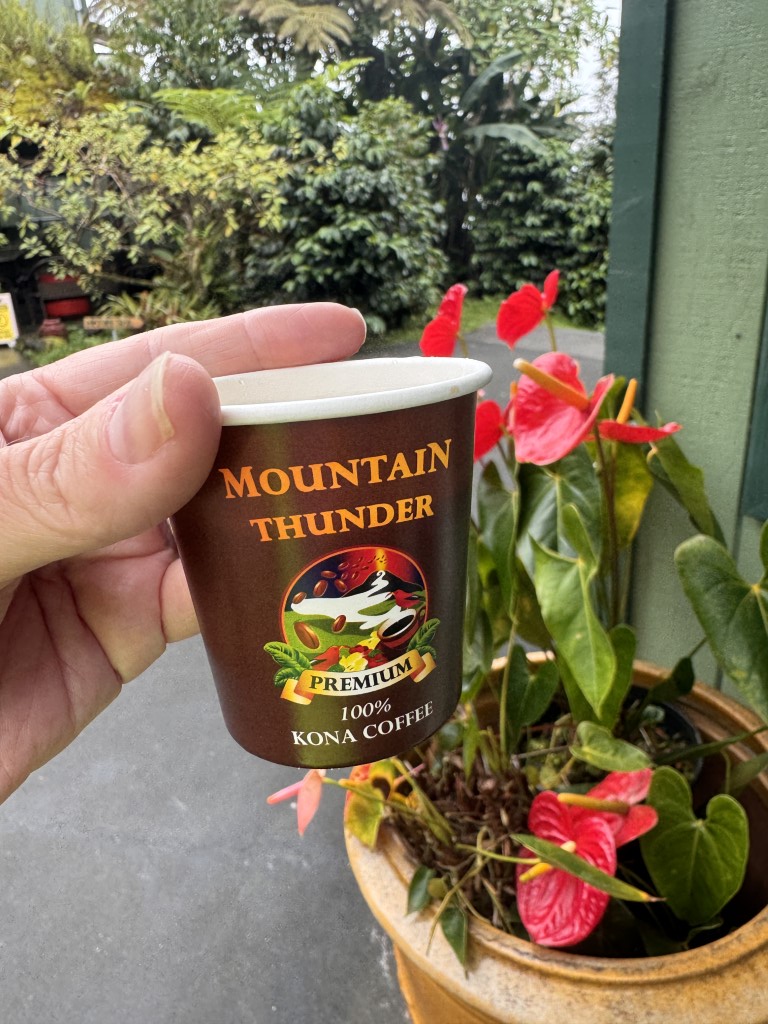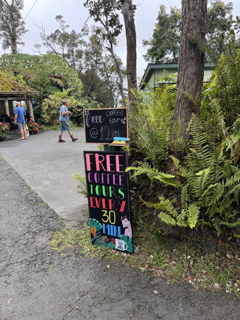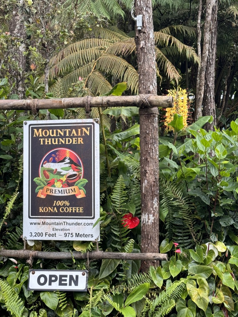 Then, after the peaceful 4-mile hike, just a couple miles down the mountain, I always stop at the beautiful headquarters of Mountain Thunder Coffee to pick up some coffee treats and savor free coffee samples. They also have free tours every 30 minutes, where they discuss Kona coffee production process. I’ve seen it a couple times, and it’s worth it!
