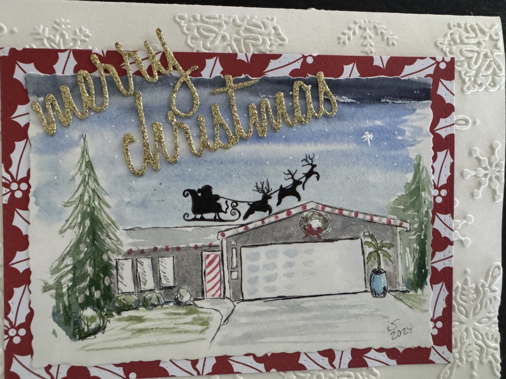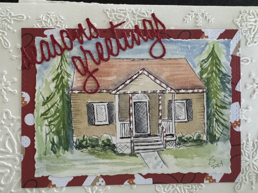 In prep of some pretty cool trips we have planned for 2025, I want to improve my urban sketching skills. So, inspired by gingerbread houses, I grabbed pictures of family/friends houses (crazy what you can find in public domain, either on Google or Zillow)…then I added some sparkle deco. As I got into it, I started worrying that people would think I’m creepy… We’ll see if (1) anyone recognizes their house and (2) if I am perceived as creepy.