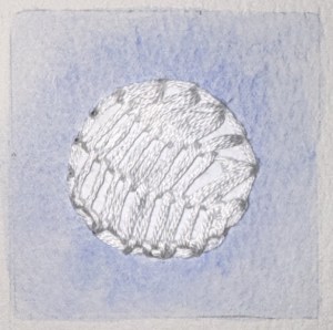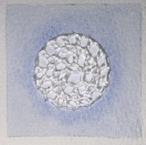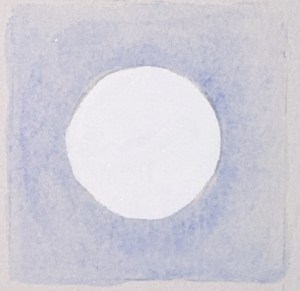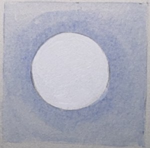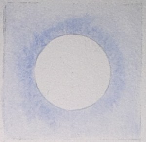 The square is consistent across all pieces: 100% cotton, 140 lb cold press paper, lightly washed with ultramarine blue in watercolor (approximately value 3–5). Around the circle, the blue is gathered slightly, allowing the shape to emerge without a hard outline.